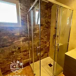 أيضاً تتضمن الحمام مع المرافق مثل شطافة بيديه والمرحاض المنفصل وحوض الاستحمام.